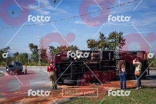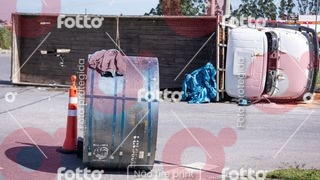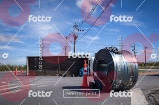 CAMINHÃO TOMBA COM BOBINA NA ROTATÓRIA DO PARTAGE SHOPPING EM BETIM