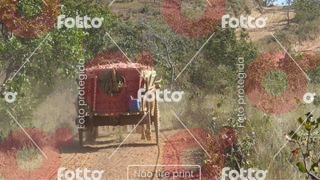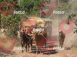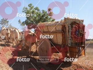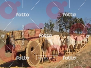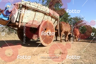 Carros de boi transportando milho em espigas ou outra carga